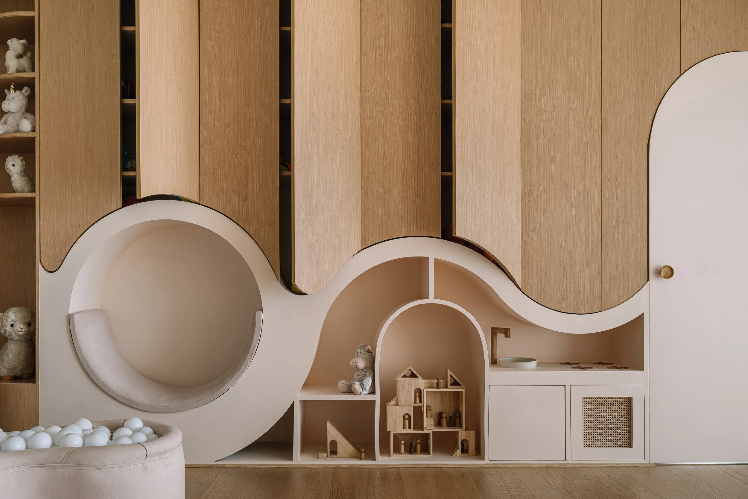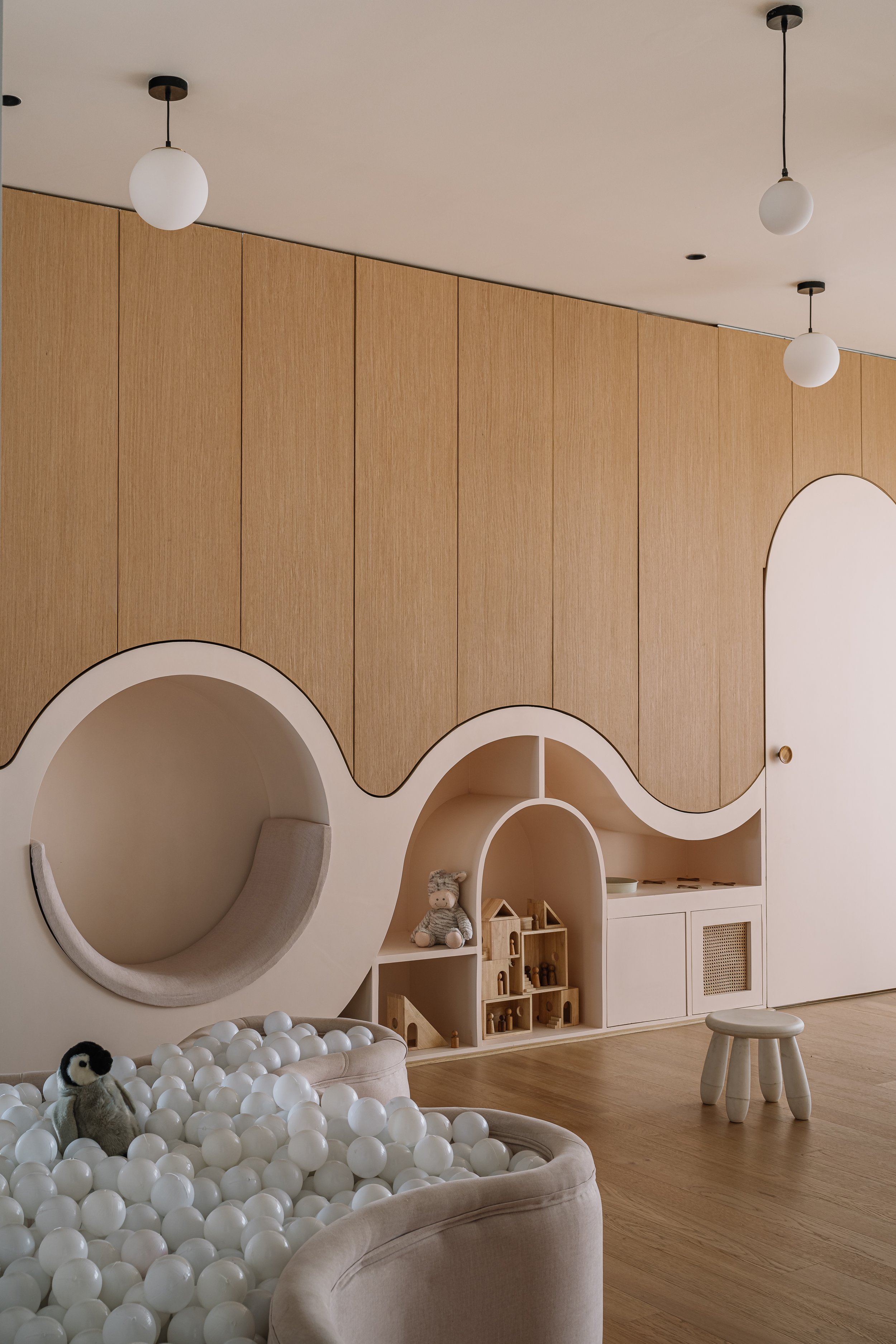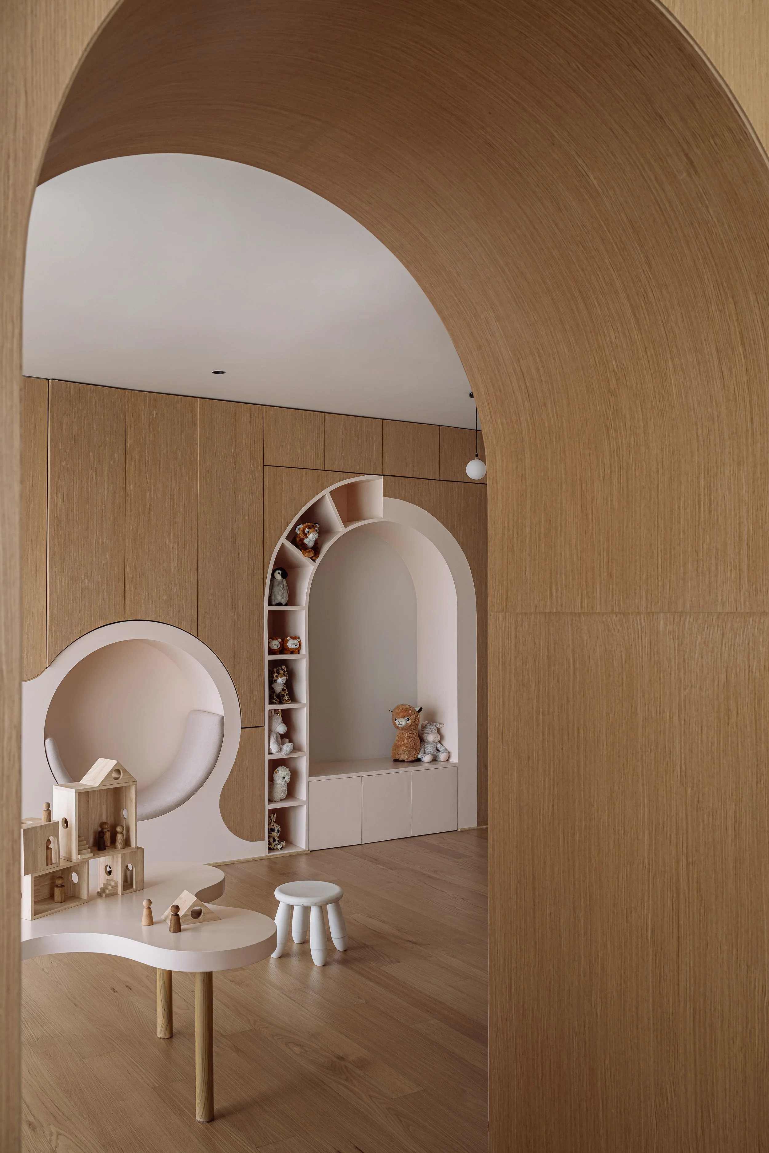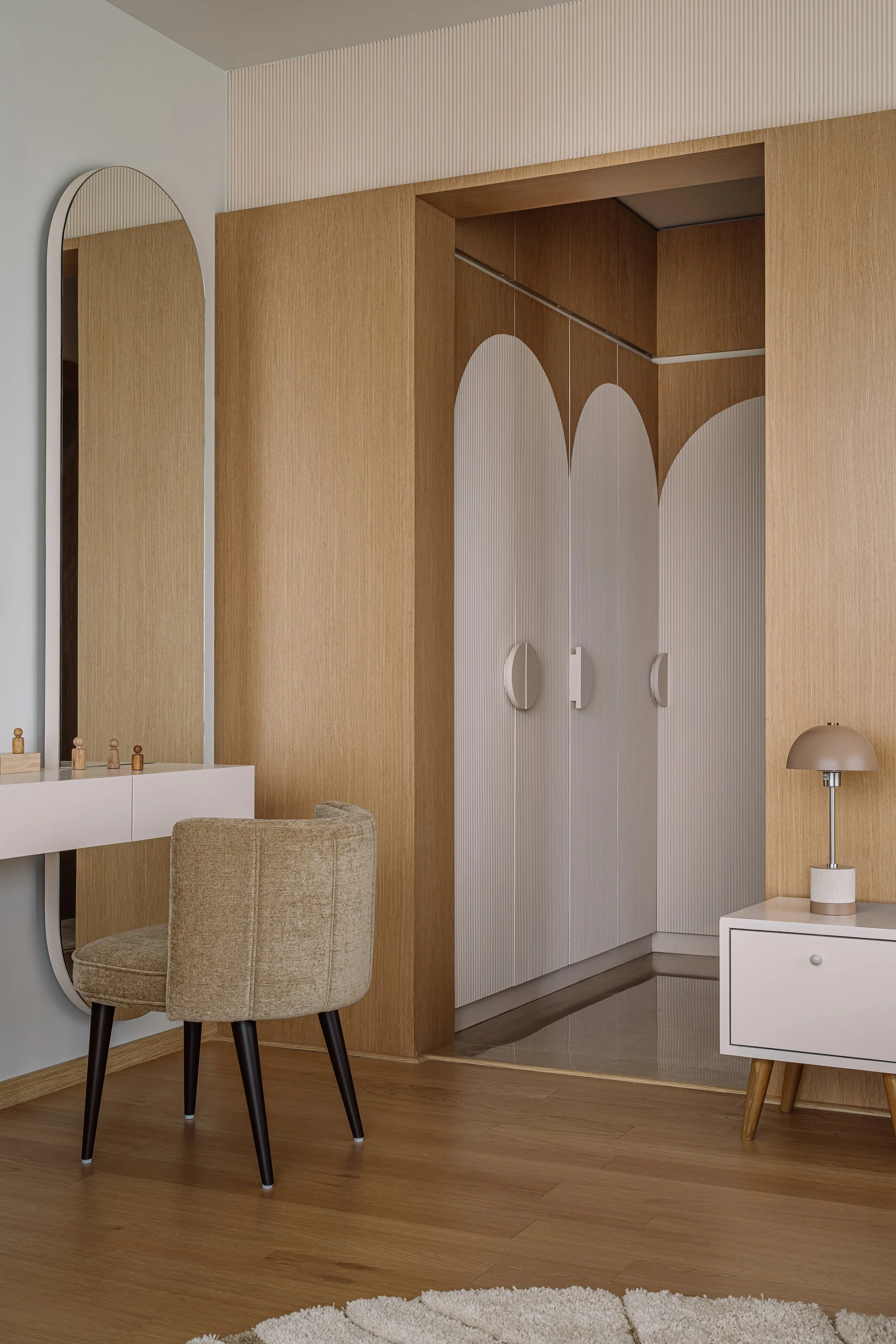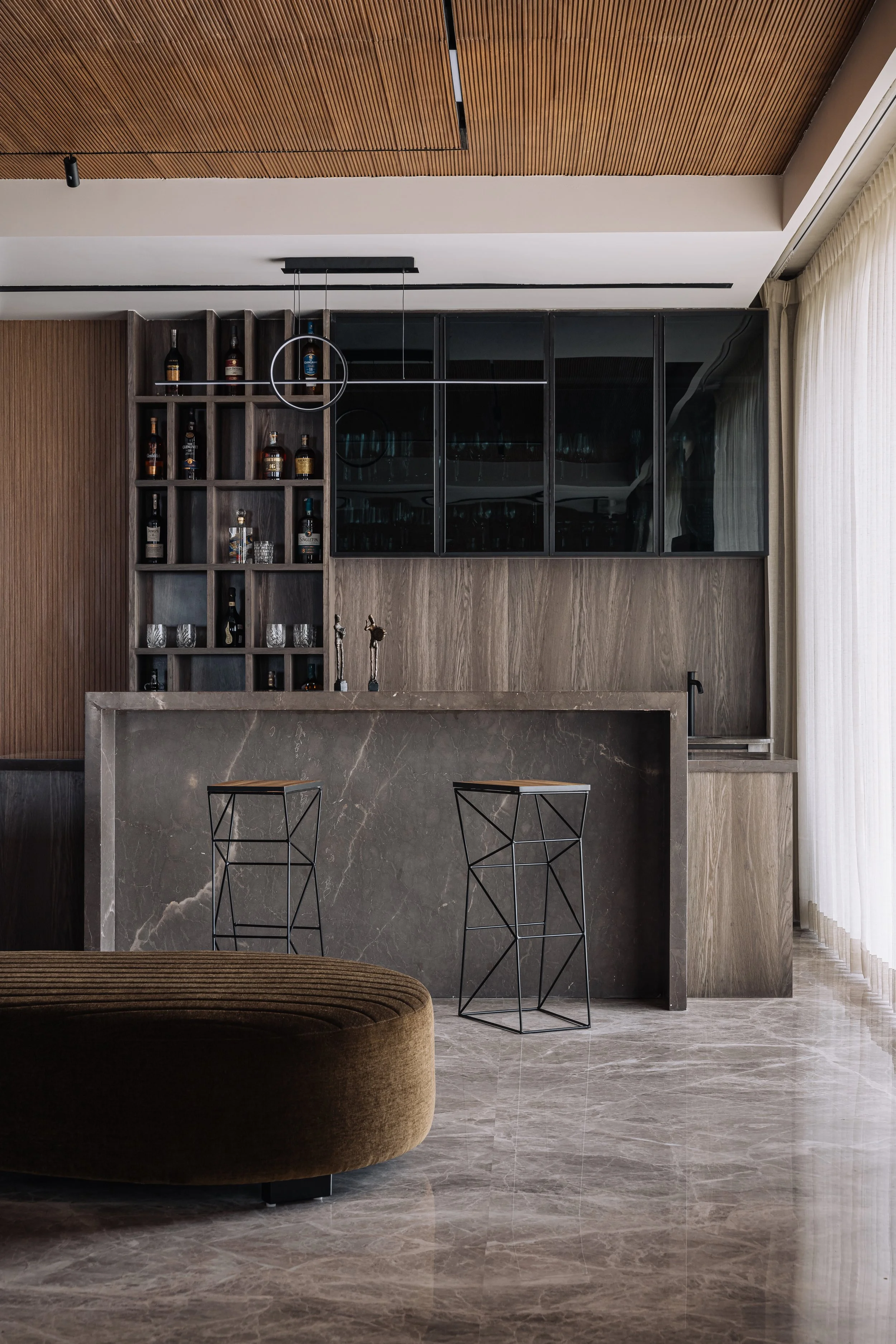 Equinox is a 6,500 sft high rise apartment designed for a young multicultural family, blending Dutch warmth with modern Indian sensibilities. The home follows an open plan layout where internal walls were removed to create seamless transitions between spaces. A muted palette of walnut browns grounds the interiors, while custom furniture and refined textures add depth and comfort. The expansive kitchen with a central island anchors the social life of the home. The children’s wing brings a lighter, playful energy with adaptable design elements. The result is a calm, minimal residence that reflects both cultural identities in a balanced and contemporary way.